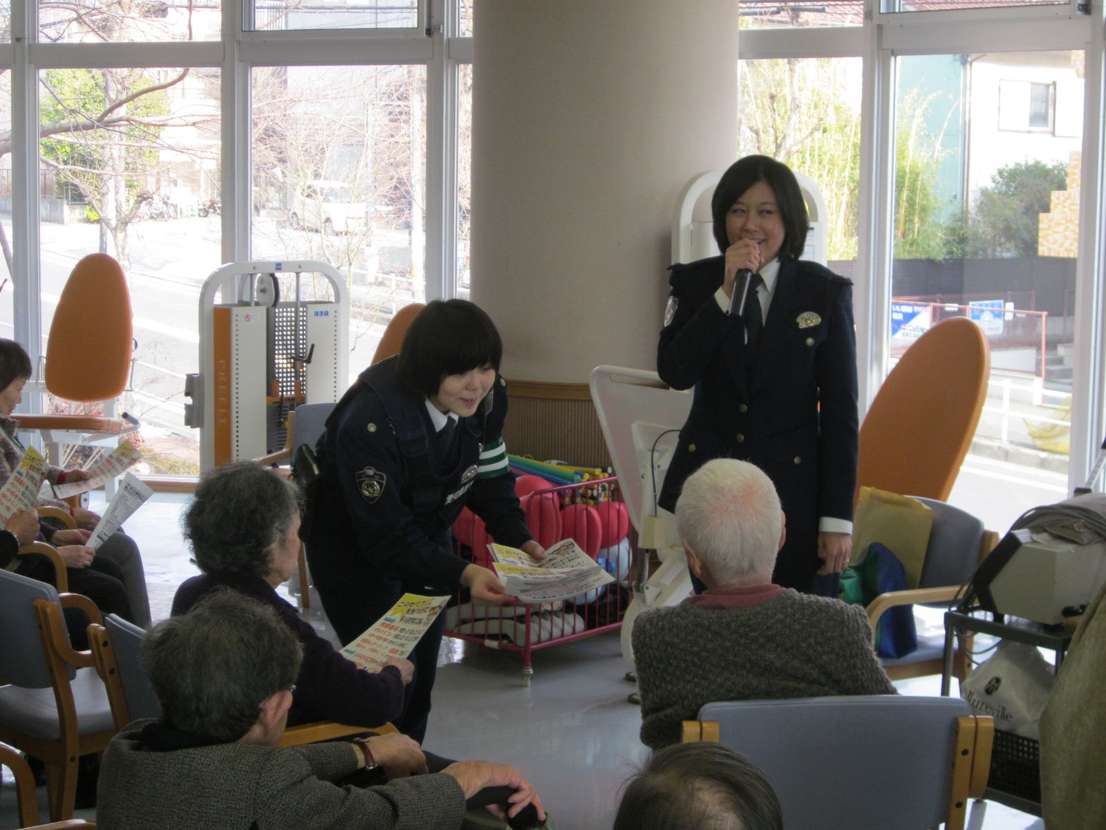 婦警さんが振り込め詐欺と交通安全の話に来てくれました 高坂苑ブログ便り