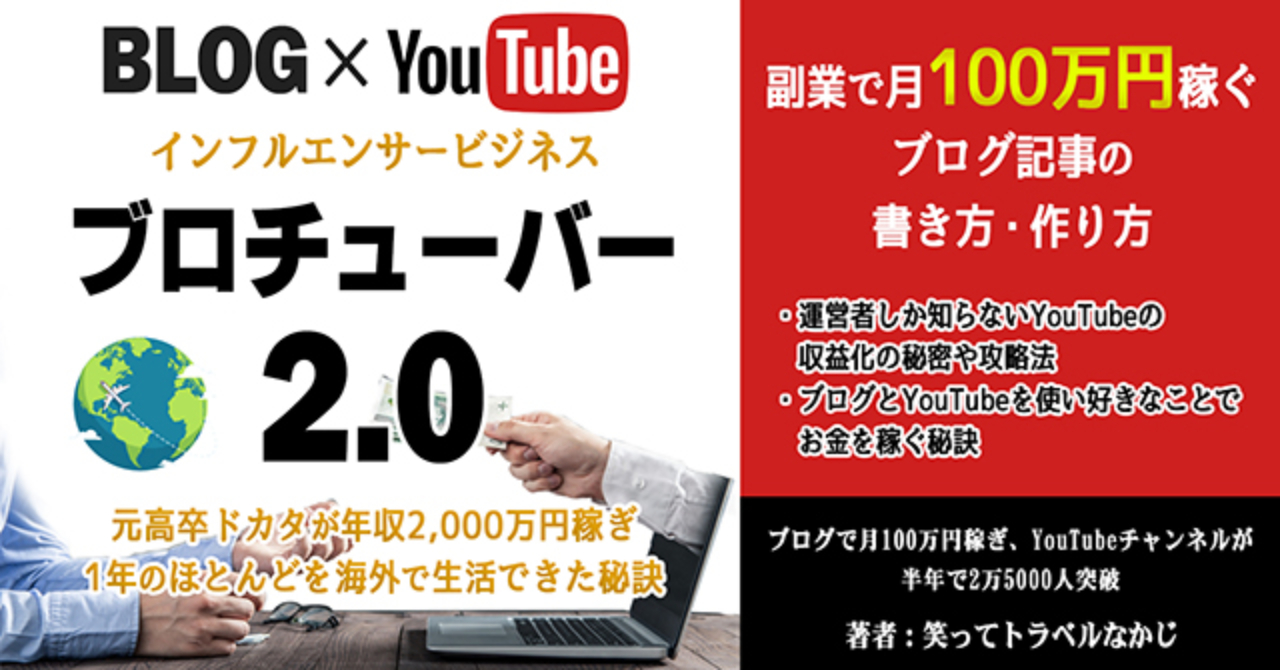 ブログ Youtubeで稼ぐ ブロチューバー2 0 インフルエンサービジネス 元高卒ドカタが年収2000万円稼ぎ1年のほとんどを海外で生活できた秘訣 笑ってトラベル なかじ オンラインマーケティング Kindleストア Amazon